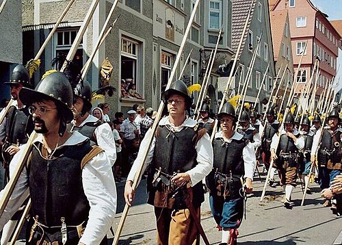 BARKER The origin of the surname Barker is English and has been found in records as early as 1200. Barker is an occupational surname that refers to those who stripped and prepared bark for use in the tanning process, and their descendants. The Barker name is more prevalent in the north of the country than in the south, where 'Tanner' is more frequently seen. A less common believed origin of this name is the Old French 'Berchier' (shepherd), and a Norman family 'Le Bercher' are thought to have been the progenitors of a number of notable Barker lines. PEARD The surname Peard is primarily of English origin, likely developing as a variant of Peart with a voiced final "-d". Peart can come from a nickname meaning 'lively' or 'bold', or a habitational name from the city of Perth. Some sources suggest it could also be a locational name, stemming from the Old English word "pere" for pear tree, and given to individuals who lived near pear orchards. DUNLOP The name Dunlop originates from Scotland and is a geographical name from the Gaelic "dùn" (fort) and "laib" (bend), meaning "fort on the bend" or "fort at the hill". It is derived from the village of Dunlop in Ayrshire, where the name was first recorded in the 13th century, referring to an ancient hill fort. BAX As a shortened form of "Baxter," which itself is derived from the Old English and Middle English occupational name for a "baker" (bakester or bakstere). BUTLER English and Norman origin: The name comes from the Old French butuiller (or Norman French butuiller), which evolved from the Latin buticula for "bottle" Occupational: It originally identified someone who was in charge of the wine cellar or was a chief servant in a medieval household. Social status: Over time, the title came to denote a position of high responsibility, and the surname was adopted by those who held or were descended from the position, regardless of their specific duties. MORRIS The Morris surname origin is varied, but is mostly believed to originate in the British Isles (where it is the 32nd most common name in England and Wales and has been found in the border between these countries as early as the Norman Conquest of 1066). Morris is thought to most often be a patronymic name, referring to the personal name 'Maurice' in England and Scotland, or 'Meurig' in Wales. The surname Morris can also sometimes be derived from someone who lived on the moors. In English-speaking countries it can also be seen as an anglicisation of the German name 'Moritz'. A modern recreation of a mid-17th century company of pikemen. By that period, pikemen would primarily defend their unit's musketeers from enemy cavalry. PIKE Topographic: From the Old English word pīc, meaning "pointed hill" or "peak," suggesting someone who lived near such a landmark. Occupational: